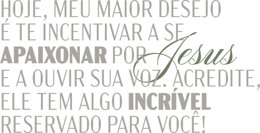 Junte-se a mim nessa jornada de fé e descubra o que Deus tem para a sua vida!